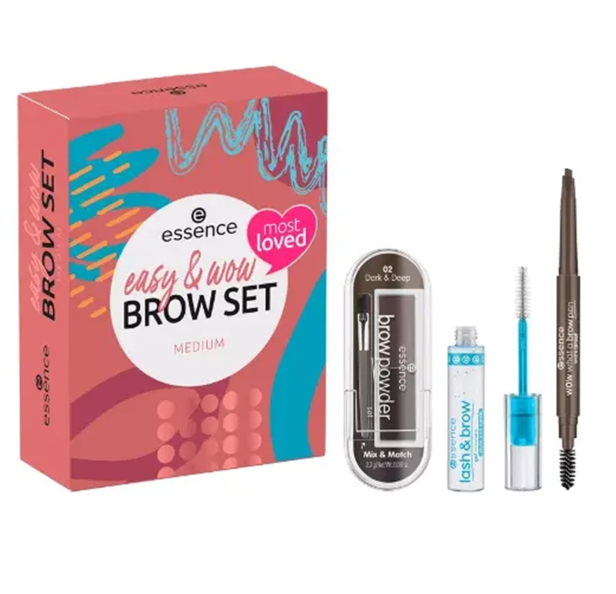 للحواجب بتأثير مذهل! توفر مجموعة Essence Easy & WOW Brow Set كل ما تحتاجينه للحصول على حواجب مثالية: باستخدام قلم الحواجب المقاوم للماء، يمكنك بسهولة تثبيت شعيرات الحاجب الفردية ثم تشكيلها باستخدام الفرشاة المدمجة. تضمن لوحة بودرة الحواجب الصغيرة حواجب ممتلئة، كما تعمل ماسكارا الحواجب الهلامية الشفافة على تثبيت المظهر وتمنح تأثيرًا يدوم طويلاً. المجموعة مثالية للحواجب ذات اللون البني إلى البني الداكن.
