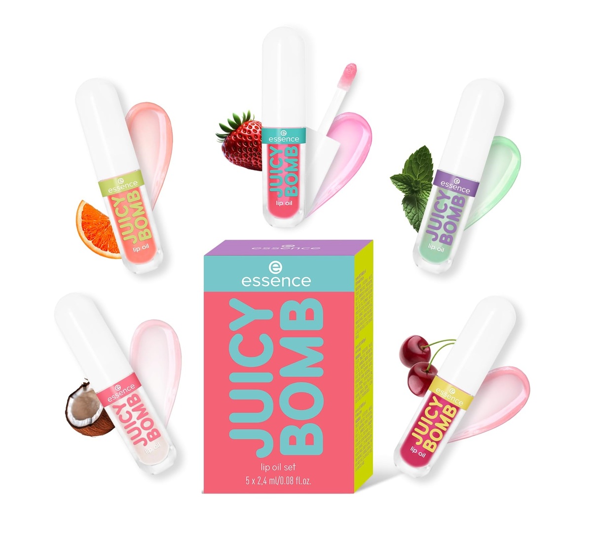 مجموعة من ٥ زيوت شفاه مختلفة لتشطيبات فائقة اللمعان. تركيبة فائقة العناية، غنية بزيت الجوجوبا وفيتامين هـ وروائح فاكهية شهية. - زيت شفاه جوسي جلو جوسي بومب ٠١ جوز الهند كراش (٢.٤ مل) - زيت شفاه جوسي جلو جوسي بومب ٠٢ ستروبيري ستار (٢.٤ مل) - زيت شفاه جوسي جلو جوسي بومب ٠٣ ماندرين ميراكل (٢.٤ مل) - زيت شفاه جوسي جلو جوسي بومب ٠٤ مينت ماجيك (٢.٤ مل) - زيت شفاه جوسي جلو جوسي بومب ٠٥ شيري تشير (٢.٤ مل)