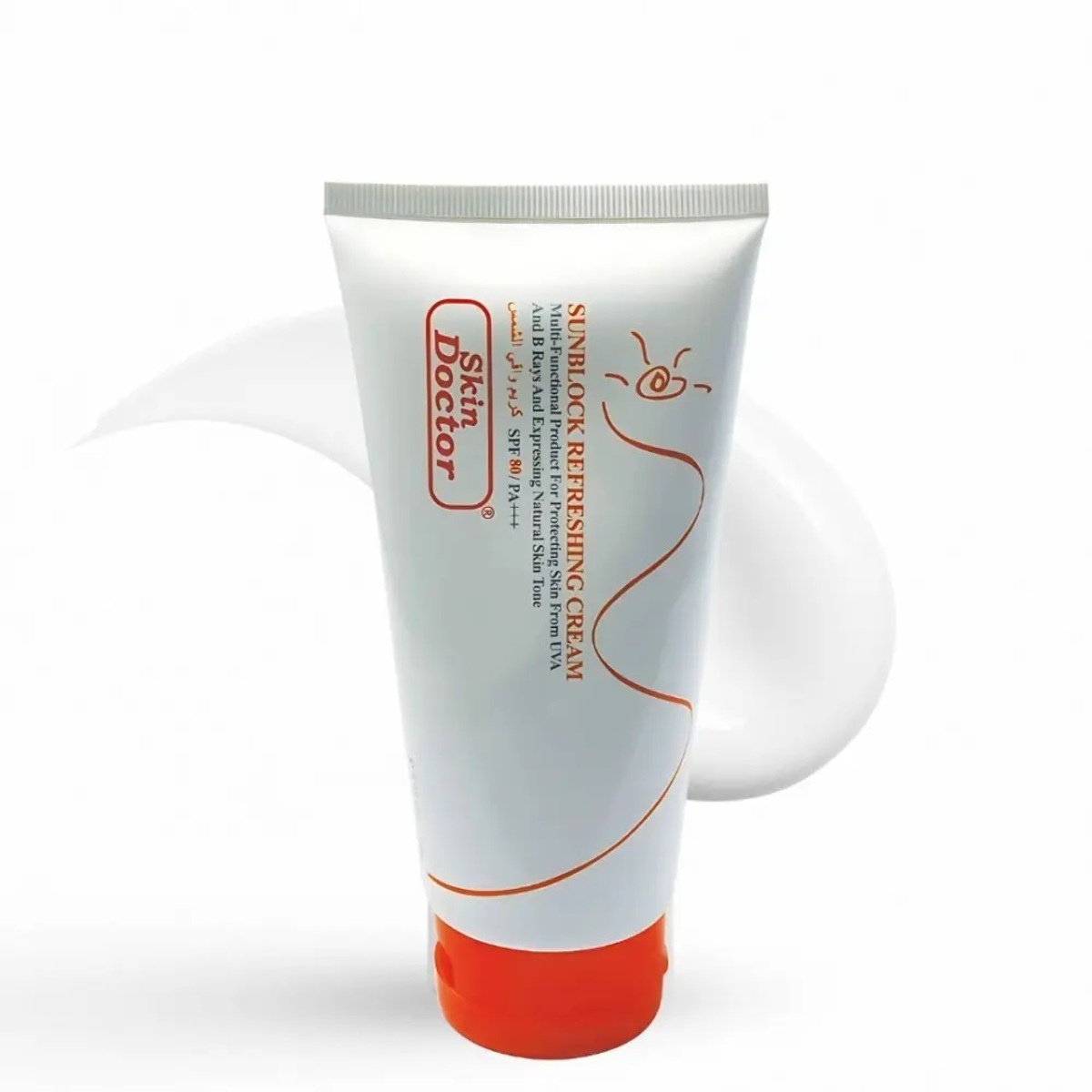 ف احصلي على بشرة خالية من العيوب ومشرقة مع حمايتها من الأشعة فوق البنفسجية الضارة باستخدام كريم Skin DOCTOR SUNBLOCK Refreshing cream spf 80 pa+++ تخيلي أنك تخرجين إلى الشمس، وتشعرين بالدفء على بشرتك، ولكنك تعلمين أنك محمية بالكامل. هذه هي راحة البال التي تحصلين عليها مع كريم Skin Doctor Sunblock REFRESHING CREAM Spf 80 pa+++. لكن الأمر لا يتعلق بالحماية فقط - فهذا الكريم المنعش يبذل قصارى جهده للحفاظ على بشرتك رطبة وناعمة. إنه مناسب لجميع أنواع البشرة، سواء كانت بشرتك جافة أو دهنية أو حساسة. الفوائد الرئيسية: حماية فائقة من الشمس: مع عامل حماية من الشمس 80 وpa+++، يوفر هذا الكريم الواقي من الشمس حماية عالية المستوى من أشعة uva وuvb، مما يمنع الشيخوخة المبكرة وحروق الشمس وتلف الجلد. خفيف الوزن وغير دهني: يتميز الكريم بقوام منعش يمتص بسرعة دون ترك بقايا دهنية، مما يحافظ على بشرتك ناعمة وسلسة طوال اليوم. مناسب لجميع أنواع البشرة: سواء كانت بشرتك دهنية أو جافة أو حساسة، فإن واقي الشمس هذا مصمم ليكون لطيفًا وفعالًا على كل أنواع البشرة. تعزيز الترطيب: غني بمكونات مرطبة، يحافظ على ترطيب بشرتك، ويمنع الجفاف ويحافظ على بشرة صحية ومتوهجة. حماية تدوم طويلاً: استمتع بساعات من الحماية المستمرة من أشعة الشمس، حتى تتمكن من ممارسة يومك دون القلق بشأن إعادة التطبيق. يمنع الشيخوخة المبكرة: تعمل مستويات عامل الحماية من الشمس العالية وpa+++ على حماية بشرتك من أضرار أشعة الشمس، مما يساعد على منع التجاعيد والبقع الداكنة وغيرها من علامات الشيخوخة المبكرة. كيفية الاستخدام: ضعيه بسخاء على بشرة نظيفة وجافة قبل التعرض لأشعة الشمس. للحصول على أفضل النتائج، ضعيه قبل الخروج بـ 30 دقيقة للسماح للمنتج بالامتصاص. أعد وضعه كل 2-3 ساعات أو بعد السباحة أو التعرق أو التجفيف بالمنشفة لضمان الحماية المستمرة. تجنب ملامسة العينين مباشرة. إذا دخل المنتج في العينين، اشطفيه جيدًا بالماء. لماذا تختار كريم Skin Doctor Sunblock Refreshing Cream؟ تم اختباره سريريًا واعتماده من قبل أطباء الجلدية لا يسبب انسداد المسام مثالي للاستخدام اليومي للحفاظ على بشرة صحية وآمنة من الشمس على مدار العام. مع كريم SKIN doctor sunblock refreshing cream spf 80 pa+++، نضمن لك أفضل حماية من الشمس لبشرتك. استمتع بالهواء الطلق مع الحفاظ على بشرتك شابة ومحمية ورطبة. لا تتنازل - احصل على كريم skin doctor sunblock اليوم واستمتع بأفضل حماية من الشمس!